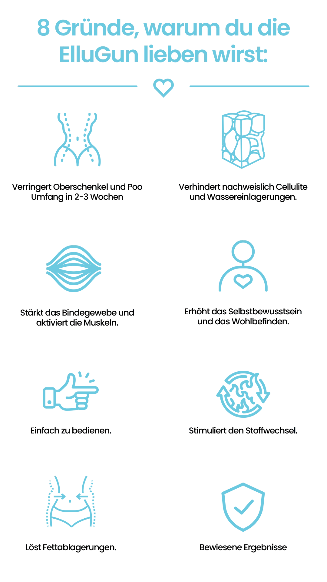 Bereit, Cellulite ein für alle Mal den Kampf anzusagen? Unser innovatives Lioaskin Ellugun Gerät verspricht langfristig straffe und cellulitefreie Haut von Kopf bis Fuß. Es ist vielseitig einsetzbar und ermöglicht dir, eine makellose Haut an deinem gesamten Körper zu genießen. Überzeuge dich selbst und verabschiede dich von unschönen Dellen. Starte jetzt in ein neues, selbstbewusstes Hautgefühl.